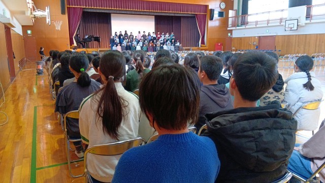 今日は5年生も参加して式の流れを確認しました。明日は、予行。みんなの気合が感じられます。予行の時には席を離れて写真を撮りにくいだろうから、今日、いろんな角度で撮ってみました。5年生から見た6年生の姿や、その逆などです。