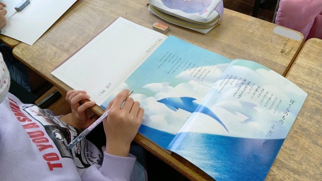 5年生国語、視写の時間です。まっさらのノートの一行目、丁寧に書き出します。