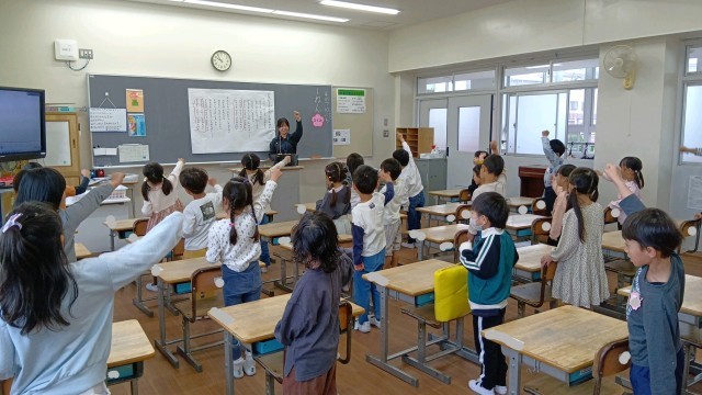 1年生の教室から元気な歌声が聴こえてきました。