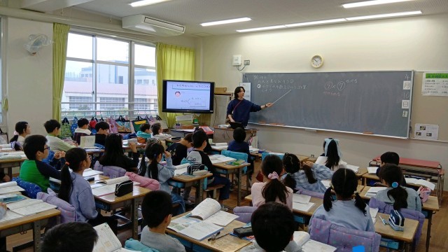 3年生算数、学習のめあてを全員で確認です。