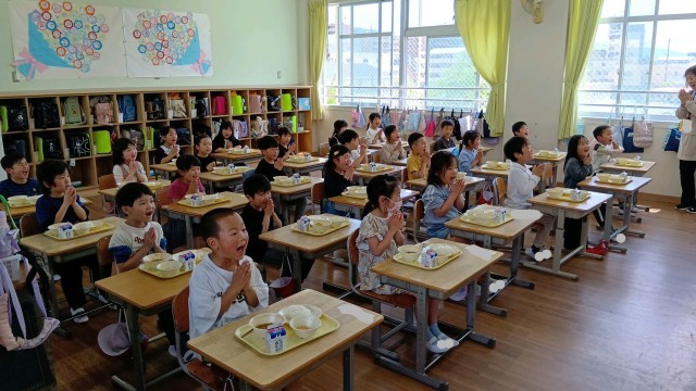 1年生はじめての給食!