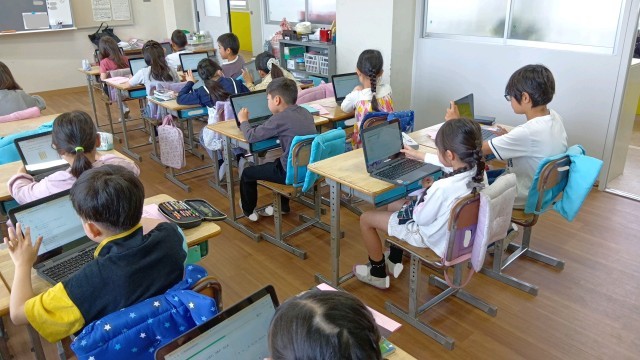 朝の学習の時間を使って、AI型デジタルドリルに挑戦しています。