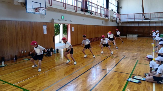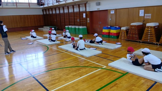 反復横跳びや上体起こし、立ち幅跳びや長座体前屈に挑みました。