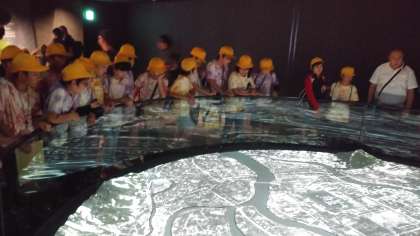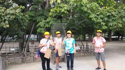 昼食のあとは、グループ行動で平和記念資料館の見学と碑めぐりを行いました。平和記念資料館はリニューアルされて、以前の展示以上に被爆者お一人お一人に何が起こったのかが、身に迫ってくるような内容でした。子どもたちもよく見て学んでいました。碑めぐりも終えて、今は一路バスで蒲刈島に向かっています。
