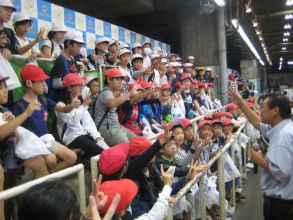 実際に子どもたちが、せりのように指で数字を出して信州のリンゴ一箱の値段をあてることをしました。8人以上の子どもたちが値段をあてることができると、リンゴをもらえます。子どもたちは考えて、指で表すのを市場の方がずーっと見られて、なんと18人が正解。全員に赤くて立派なそのリンゴを一個ずつお土産にいただき、子どもたちも大喜びでした。