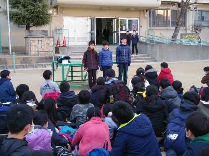 今朝7時に運動場で出発式を行い、代表のお友だちが2日間の抱負を話しました。