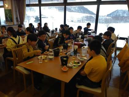 朝食をおいしくいただいて、いよいよ2日目のスキー教室の始まりです。山々もとてもきれいです。