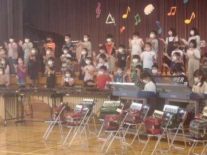 4年生。クラッピングファンタジー第8番「にぎやかなおしゃべり」トーンチャイム奏「TSUNAMI」。