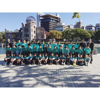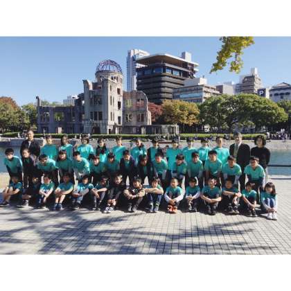 広島平和記念公園に着きました。平和学習で学んだ戦争の恐ろしさと命の尊さを、74年前に原爆が投下されたこの地で、さらに深く学んでいきます。
