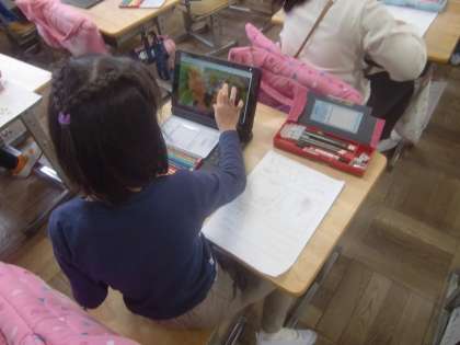 11月9日(火)、1年生は調べ学習「タブレットを使って」に取り組みました。1年生達が、その小さな手でタブレットを使うことに、違和感を覚える方もいらっしゃるかと思いますが、当の1年生達にとっては、もはや常識と化しています。今日は調べ学習に取り組んでいるようです。その手つきの見事なこと・・・。修学旅行でも、6年生達はタブレットを携帯していました。流石は21世紀です。