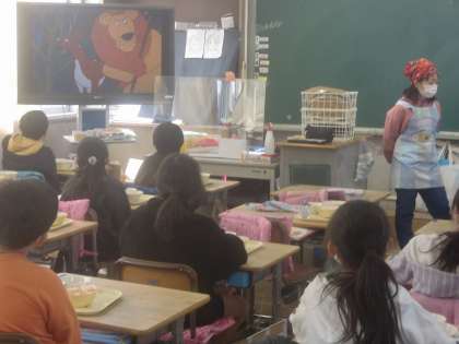 1月17日(月)給食待ち時間は静かにビデオを観たりしています
