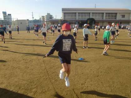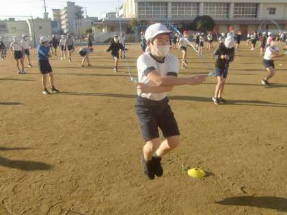1月18日(火)、朝の体力づくりとして、なわとびが始まりました。トップバッターは高学年です。(密を避けるため低・中・高の3グループで、それぞれ週1回実施予定です。)寒風吹きすさぶ中、元気にとぶ高学年達の姿をお届けします。