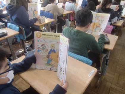 1月21日(金)、5年生は英語で「Welcome to Japan」に取り組みました。外国の方に「ようこそ日本へ」の気持ちをお伝えするにはどうしたらいいでしょうか?「おいしい日本の食べ物を食べてもらう」「日本独特の文化を紹介する」「美しい自然を見てもらう」Etc・・・。多様なアイデアが出されます。「Welcome to Japan」に一生懸命の5年生です。
