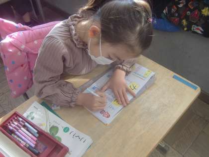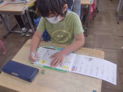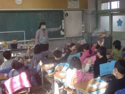 2月2日(水)、1年生は国語で「漢字」に取り組みました。まずは担任の先生と一緒に「空書き」です。空中に大きく、書き順通りに、漢字を書きます。それから鉛筆を持って本番です。『先生みたいに、きれいに書きたいな!』・・・練習あるのみです。がんばれ1年生!
