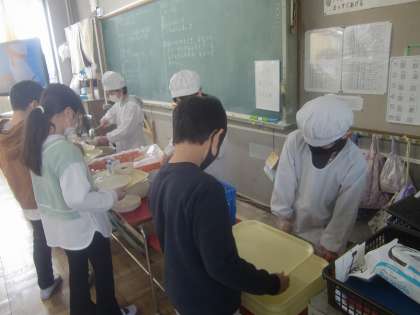 Q:調理員さんの体調は、毎日チェックしているの?A:YES。Q:調理作業ミスを防ぐ工夫は?A:給食調理員さんのエプロンは、調理作業ごとに色違いになっています。Q:サラダに使う野菜も加熱しているの?A:YES。Q:子ども達が食べる前に食べて、異常がないか確認しているの?A:YES。校長(教頭)が食べています。美味しくて安全な給食の影に多くの人の仕事があります。感謝の気持ちを込めて『いただきます』