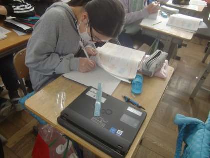 2月9日(水)、6年生は算数で「円周=直径×円周率」に取り組みました。実は、この時期の6年生算数は概ね既習学習の復習です。中学校進学に向けてのまとめとも言えます。円周率は、中学校では、もちろんπとなるわけですが、小学校では近似値の3.14で計算します。6年間の学びの集大成を図る6年生です。