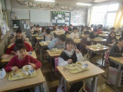 2月16日(水)の給食メニューは、やきめし、鶏肉のオイスターソース炒め、コーンたまごスープ、牛乳です。中華風メニューでしょうか?良質のたんぱく質が豊富と言われる鶏肉、しかもオイスターソースで炒めるとあっては、栄養も美味しさも抜群に決まっています。おまけに、やきめしとたまごスープもあるなんて、目移りして、どれから食べようか迷います。『いただきます』