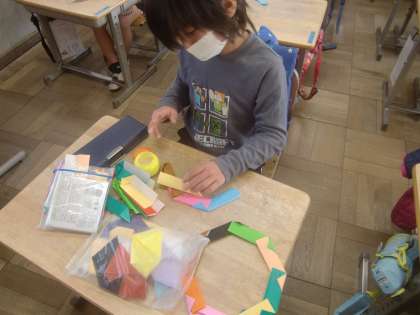 2月18日(金)、1年生は図工で「卒業する6年生へのプレゼント」に取り組みました。思い起こせば1年前、入学した1年生を「きずなリング」で優しく案内してくれたのは6年生でした。以来、集団登校や仲活やそうじなど、色んな場面でお世話になりました。その6年生へのプレゼントとあっては、気合が入るのも道理です。「ありがとう」の気持ちを込めて、一生懸命の1年生です。