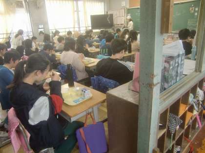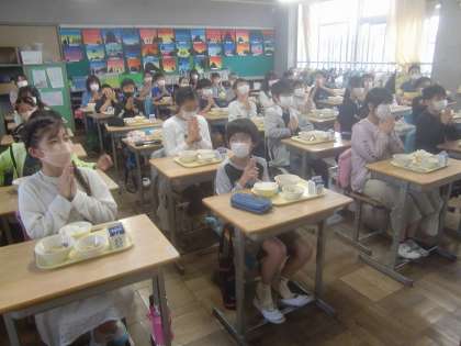 10月7日(金)の給食メニューは、ごはん、けんちん煮、ごまあえ、ふりかけ、牛乳です。けんちん煮は、とうふ、うすあげ、鶏肉、さといも、大根、れんこん、にんじんなど実に具だくさんです。感謝の気持ちを込めて『いただきます』
