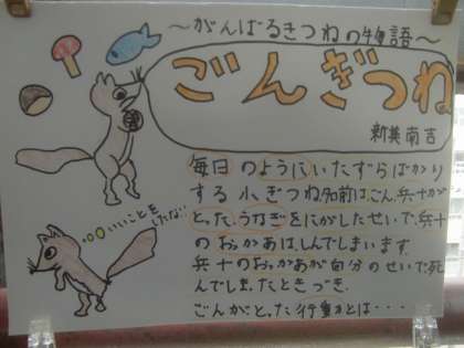 10月12日(水)、4年生は国語で「おすすめしたい本のポップ発表会」に取り組みました。ポップとは宣伝広告を表す言葉です。4年生は先立って「ごんぎつね」のポップづくりに取り組んでいます。今日は、各自が選んだおすすめしたい本のポップ発表会です。見栄えのするポップとともに、おすすめ理由を級友に届けます。