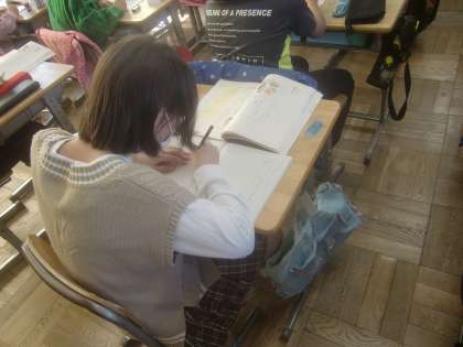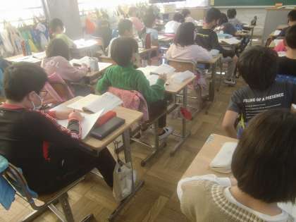 11月10日(木)、4年生は国語で「慣用句」に取り組みました。数ある慣用句について、意味や使い方を学びました。「頭をひねる」では、実際に頭をひねろうとしている姿に、思わず笑ってしまいました。色々な慣用句を楽しみながら学ぶ4年生です。