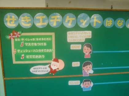 12月2日(金)保健室前掲示「せきエチケット:掲示板をはみだして」