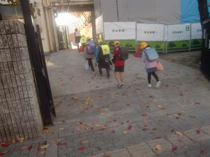 おはようございます。今日は師走の5日です。枯れ葉舞う、ここ西門から元気に登校する住南っ子をお届けします。「さあ、1週間のスタートです」