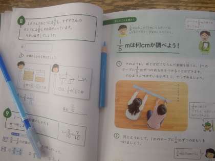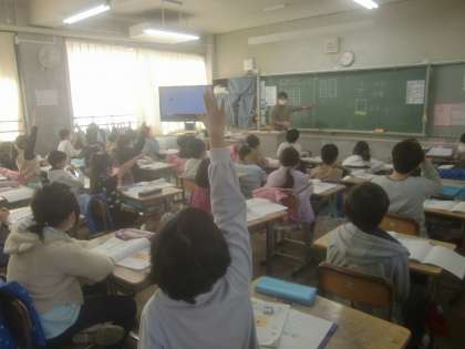 12月8日(木)、3年生は算数で「分数の引き算」に取り組んでいます。整数の引き算ならお手の物ですが、分数となると戸惑いを隠せません。それでも計算方法を見つけ出し、果敢に計算に挑みます。がんばれ!3年生!