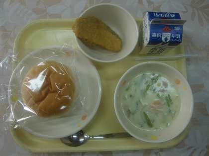 12月8日(木)の給食メニューは、ハンーバンズ、かぶのクリーム煮、サーモンフライ、牛乳です。かぶは日本で古くから親しまれている野菜で、栄養も豊かだそうです。美味しく栄養豊かな給食に、感謝の気持ちを込めて『いただきます』
