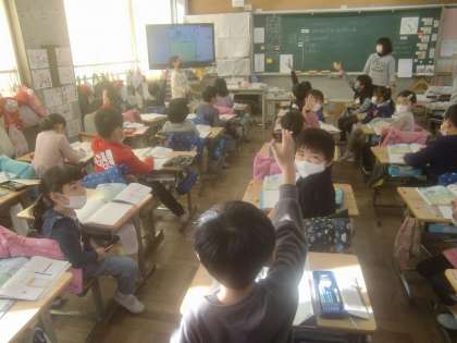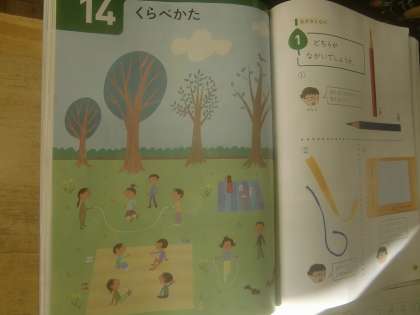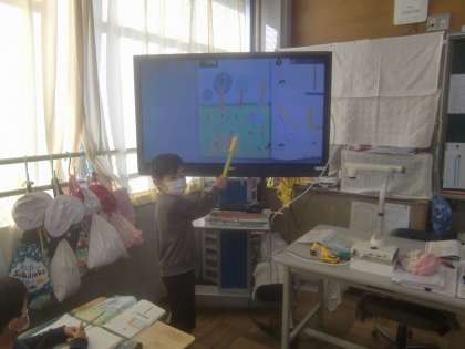 12月9日(金)、1年生は算数で「くらべかた」に取り組んでいます。同じ雲でも、大きさや形は色々です。同じ木でも、高い木もあれば、低い木もあります。1年生は、大きさや形や長さでくらべることを学んでいます。3枚目の写真は、自分が見つけた着眼点をクラスのみんなに紹介している所です。算数的な考え方を高める1年生です。