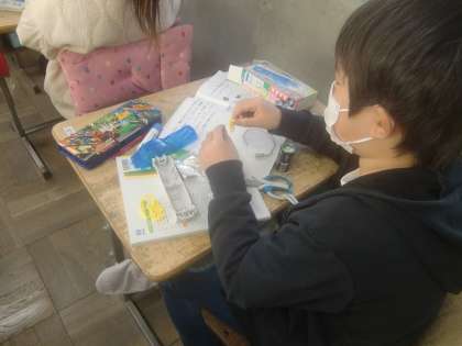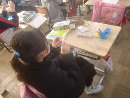 12月14日(水)、3年生は理科で「あかりをつけよう」に取り組んでいます。電気を扱う単元です。子ども達は電池や豆電球や配線に興味津々です。未知の領域に一生懸命に挑む3年生の姿をお届けします。