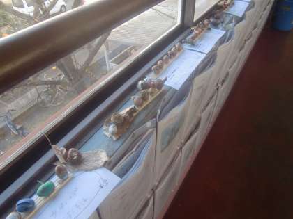 現在、体育館で「校内図工作品展」が開催されています。懇談の際には、ぜひ、お立ち寄りください。(防寒着をお忘れなく)。一方、教室、ろうか等にも習字や壁新聞や図工作品が展示されています。その出来栄えは、校内図工作品展同様、見ごたえ十分です。ごく一部を紹介します。写真は上から、1年生の「どんぐりをつかって」、4年生「習字」、6年生