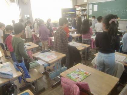 12月16日(金)、2年生は音楽で「くりかえしをつかって音楽をつくりましょう」に取り組みました。タンバリンに合わせて「2拍子」や「3拍子」をリズム打ちして、拍子を学びます。慣れてくるとテレビに合わせて、ボディーパーカッションよろしく全身を使ってリズムに乗ります。とても楽しそうな授業でした。