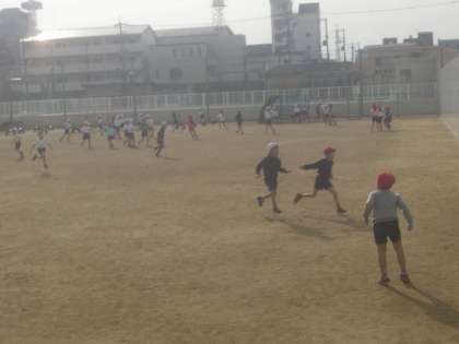 1月13日(金)、1年生は合同体育で「おにごっこ」に取り組みました。寒さは厳しいのですが、そんなことは「おかまいなし」とばかりに夢中におにごっこを楽しんでいました。元気な1年生の姿を写真でお届けします。