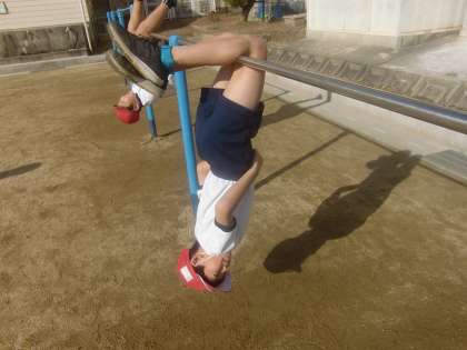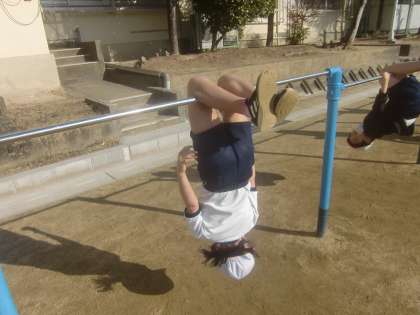 1月18日(水)、3年生は体育の鉄棒で、こうもりに取り組みました。鉄棒にぶらさがった様子が、洞窟等でぶら下がるこうもりに似ていることからの命名です。油断をすると地面に落下することから、子ども達は慎重に回転したり、ぶら下がったりしています。3年生の妙技を写真でお楽しみください。