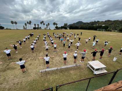 おはようございます。修学旅行2日目がスタートしました。朝の集いでラジオ体操!気持ちのいい朝です。
