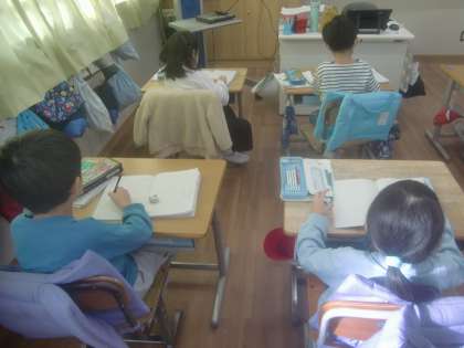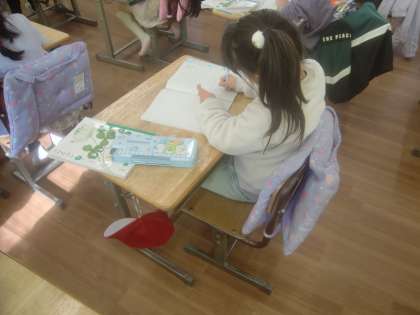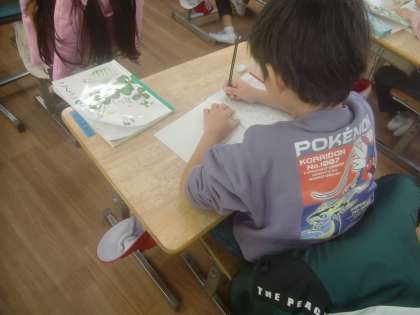 11月20日(月)、1年生は国語で「カタカナで書こう」に取り組んでいます。先生が「しょべるかー」と発音するのを聞いて「ショベルカー」と書くのは、なかなか難しいです。難課題に一生懸命取り組む1年生です。