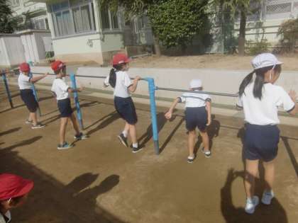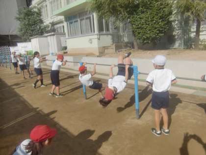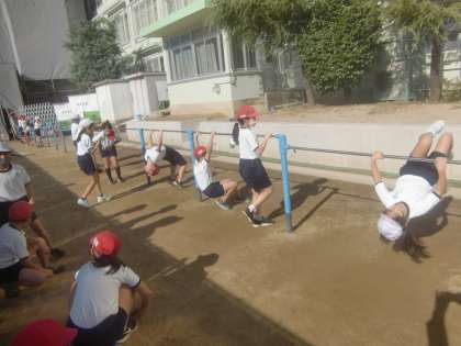 11月22日(水)、3年生は体育で「鉄棒」に取り組んでいます。難関単元です。頭の中で思い描くような逆上がりをしようとしても、実際は難しいのです。自らの身体能力を駆使し、果敢に挑む3年生です。