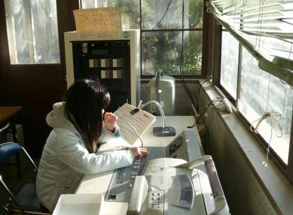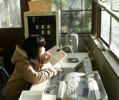 放送委員が「みなさん、おはようございます。12月5日金曜日、朝の放送を始めます。」とさわやかな声で校内放送をしています。