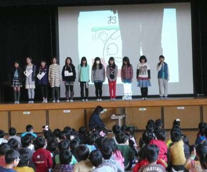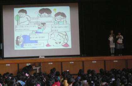 児童会からは保健委員会が「朝食を食べることの大切さ」について、パワーポイントを使って説明がありました。