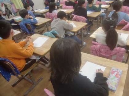3月13日(水)、2年生はゲストティーチャーに保護者様をお招きし「外国語活動」の一環として中国について学びました。「中国では、現金ではなく、ほとんど電子決済ですよ」に、「え、え〜!」と2年生。「交差点では、『あと何秒で赤信号に変わります』と数字が出ますよ」に「え、え〜!」と2年生。カルチャーショックのオンパレードでした。