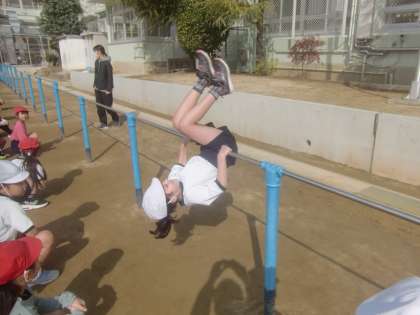 3月14日(木)、2年生は体育で「鉄棒」に取り組みました。回転技に取り組む強者もいますが、難しい単元です。ちなみに逆上がりは「上がり技」であり、回転技となると「腕立て後転」になります。また、前回りは「おり技」であり、回転技となると「腕立て前転」となります。難関単元に挑む2年生です。
