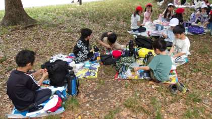 10時ごろからすでに「おなかすいたー!」と言っていた人がいましたね。しかし、「おなかがすくほどお弁当がおいしくなるよ〜」といいつつがんばりました。お弁当のおかずではポークビッツが人気だったようです。食べ終わったあとは、もう一つの公園、「とりで広場」へGO!