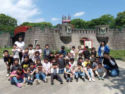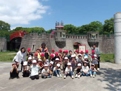 1年生 遠足 木陰でお弁当を食べ、とりで広場へ