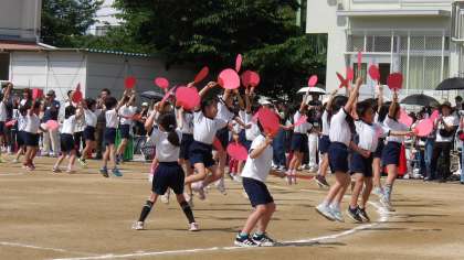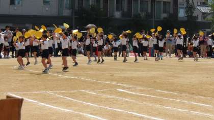 2年生のダンスはカラフルなうちわを使ってのゆっくりとした動きを効果的に取り入れていました。タイミングやポーズを合わせるのが難しかったでしょうが、しっかり踊れていましたよ!!