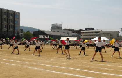 4年生のダンスはバンダナを手に持ってのダイナミックなダンスです。