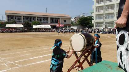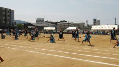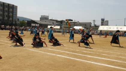 漁師が網を引く動きを取り入れているソーランですが、実はこの動きはとても足腰にきついのです。自作の法被(はっぴ)と大漁旗をなびかせながら、勇壮に踊り切りました。