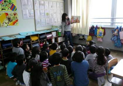 1年生 絵本読み聞かせ 物語に集中して楽しく聞いていました。