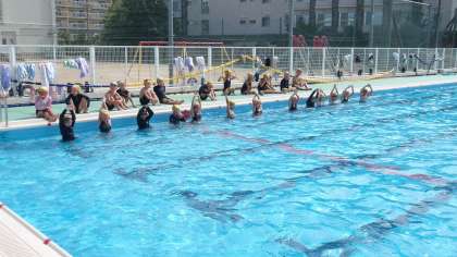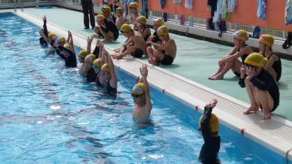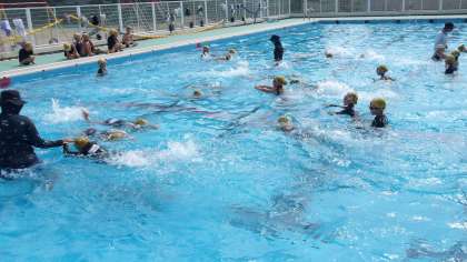 伏し浮きからのバタ足をします。よ〜い、ドン!