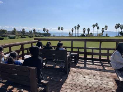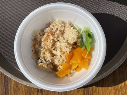 最後のご飯は鯛飯茶漬けです。天気がいいので、ウッドデッキでリゾート気分で食べました。おかわり自由です。